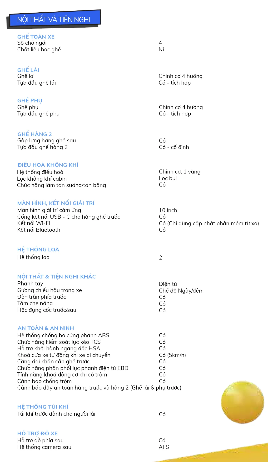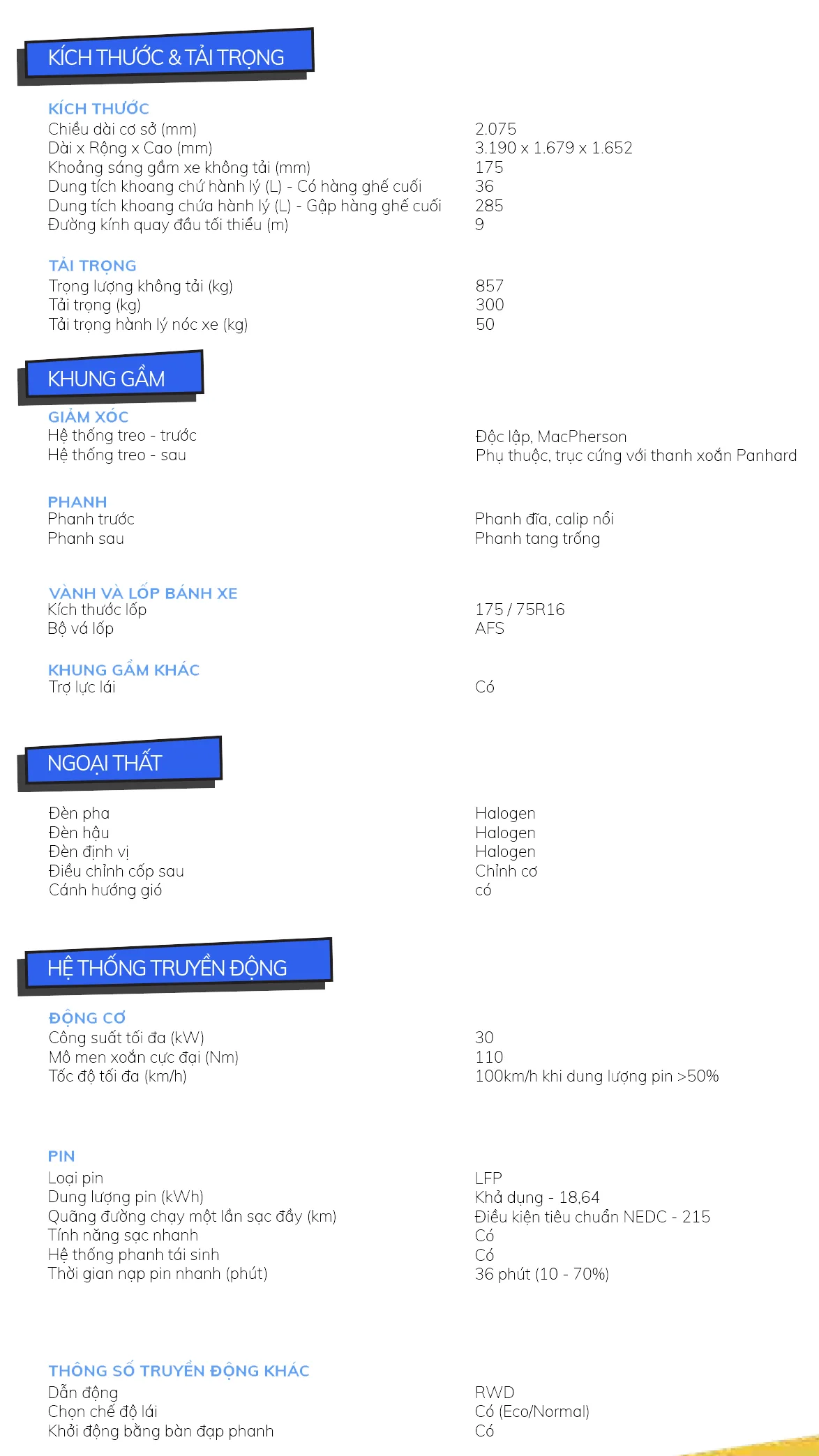 | Quãng đường chạy một lần sạc đầy (dự kiến) | 205 - 210 (km) |