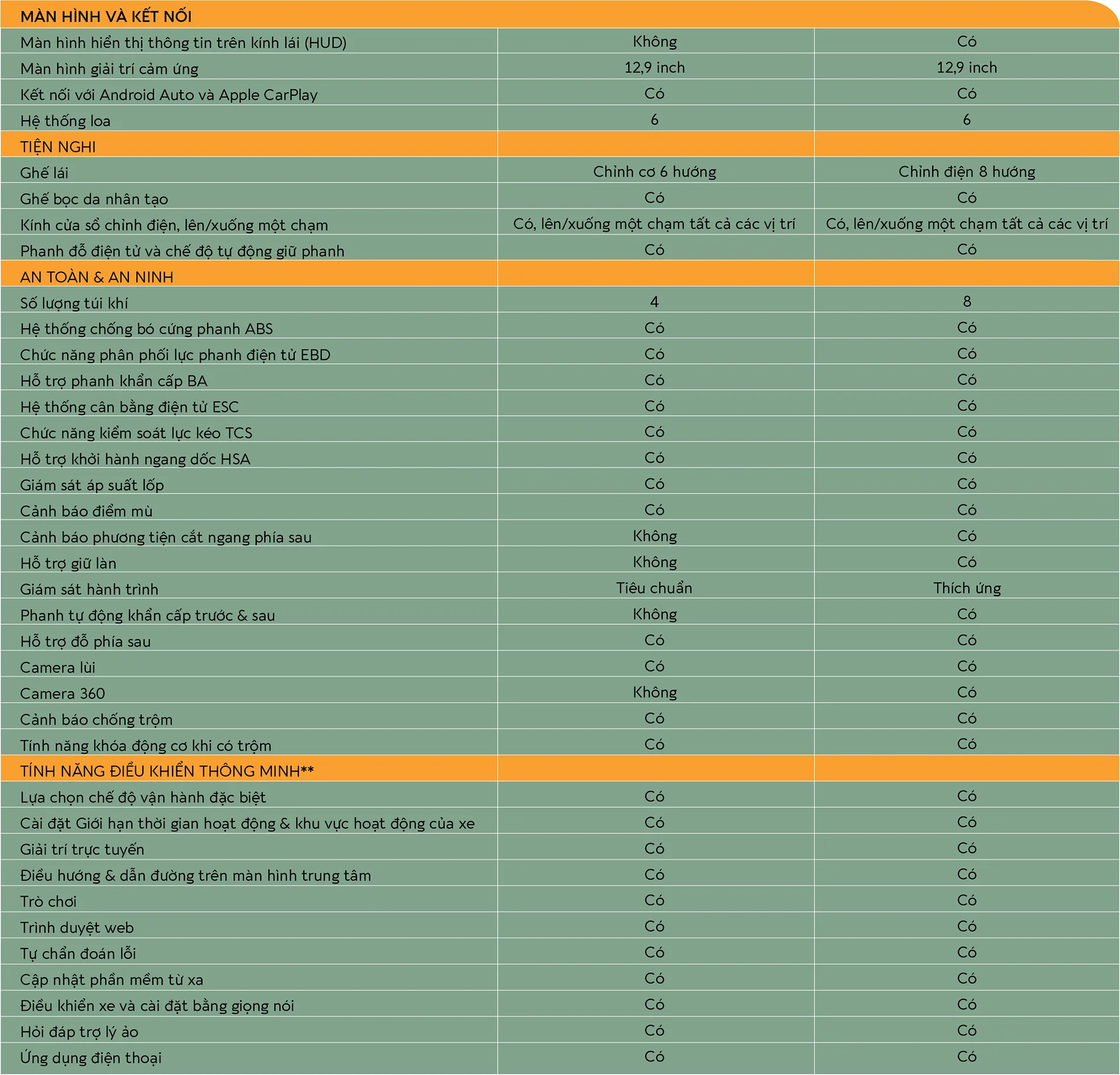 | Quãng đường di chuyển (NEDC)* | 480 km/lần sạc | 460 km/lần sạc |