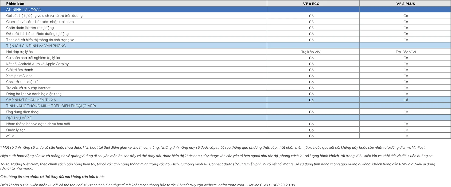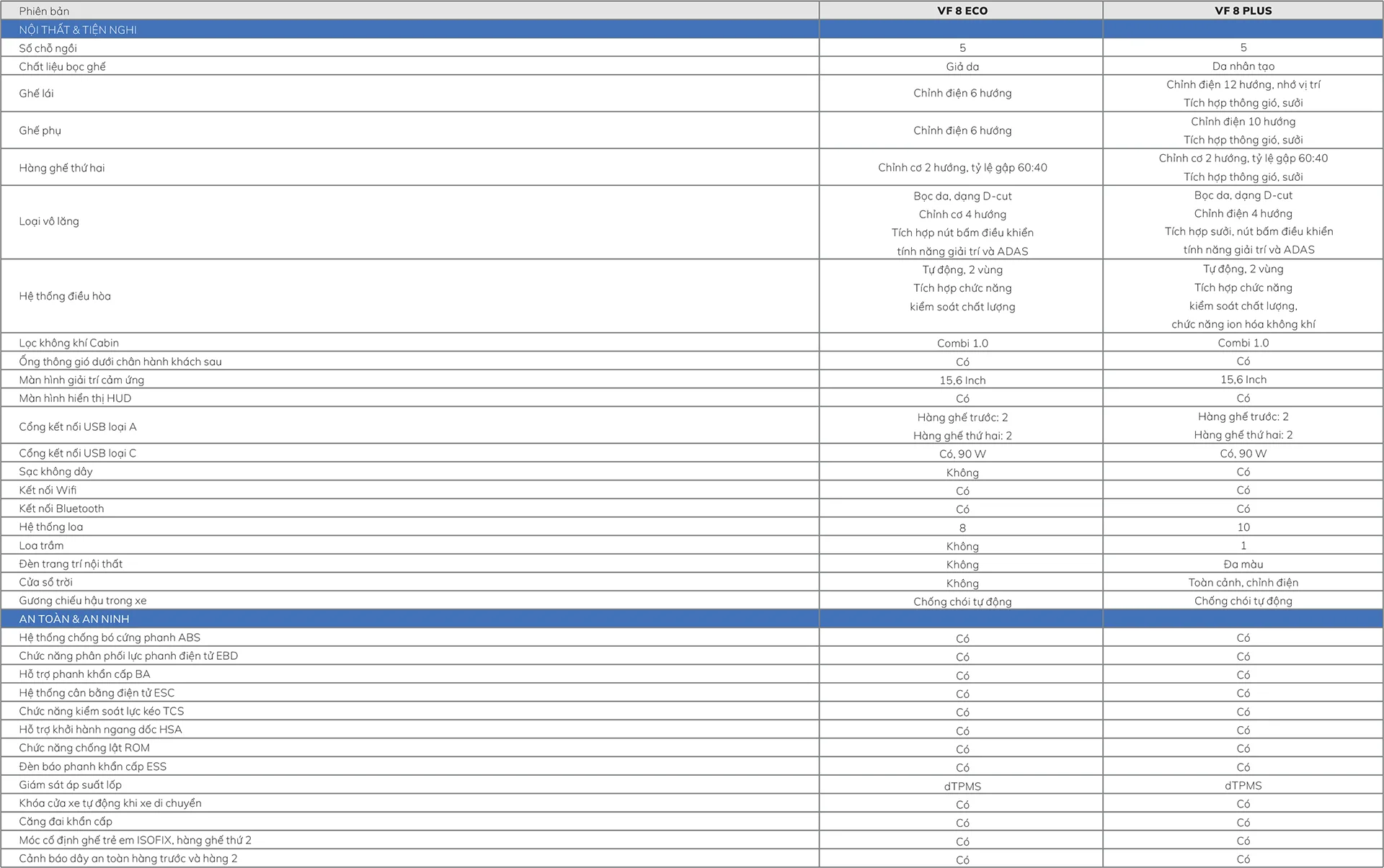 | VF 8 | Eco | Plus |